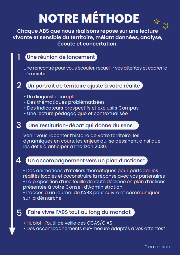 Pensée comme une démarche continue, l’ABS devient votre outil d’aide à la décision pour piloter et ajuster votre projet social communal ou intercommunal tout au long du mandat.